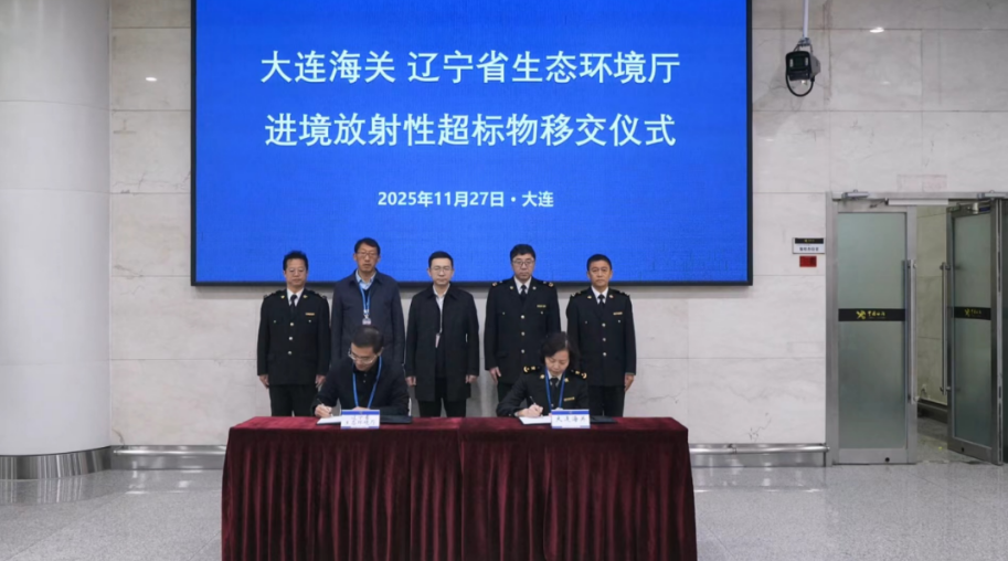 2025年11月27日,辽宁省生态环境厅与大连海关在大连周水子机场举行查获入境放射性物品移交仪式。该批物品共5件,包括“保健内衣、保健石、能量石”等,其中单件物品最大辐射剂量率为175.9μSv/h。双方严格按照技术规范,共同对物品进行了现场测量、查验、登记和整备包装,在确保符合运输相关规定后,由专业运输车辆转运至辽宁省城市放射性废物库。这次工作彰显了我省在强化核与辐射安全监管、构建跨地区、跨部门联防联控机制方面的工作成效。