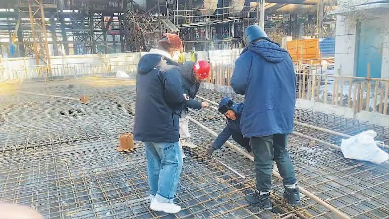 地处东北的鞍山地区,冬季施工时,低温给工程质量带来严峻挑战。“我们首先在鞍钢厂区内搭设暖棚,为混凝土施工创造适宜的温度环境。同时,在混凝土中添加早强剂和防冻剂,确保基础强度能够满足设计要求,有效抵御低温对工程质量的影响。”刘占博介绍道。